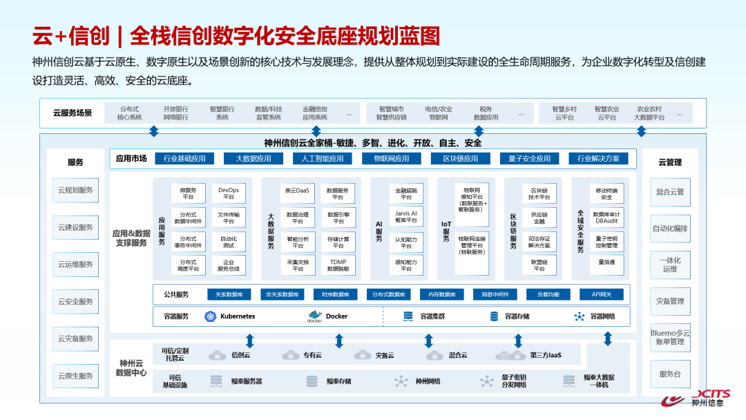 在金融信创方面,作为国内最早参与信创工作的科技企业,在云数原生的技术趋势下,BB贝博艾弗森官网围绕全栈信创数字化安全底座规划蓝图——“神州信创云”,通过信创架构规划设计、银行系统信创解决方案、信创全适配服务、信创云和分布式基础设施、信创集成和运维服务,为金融机构提供全栈金融信创服务。