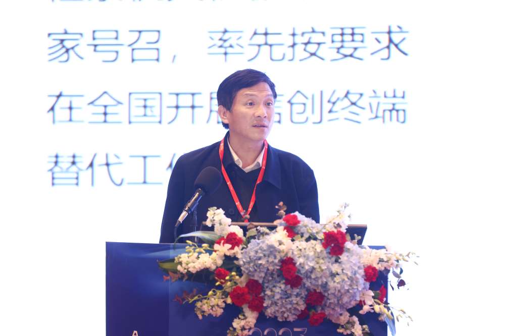 中国信息协会会长何翠芹作为主办方为大会致开幕词。何会长在致辞中表示,当前,我国信创产业发展正处于量变到质变的关键期,政策催化叠加外部环境不确定性持续加剧,正助推我国信创行业进一步提速。